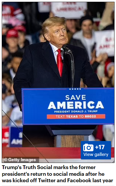 Truth Social的推出标志着川普自去年被禁止访问 Twitter、Facebook 和YouTube 后重返社交媒体——而且颇具玩味的是,软件推出当天正好是总统日。