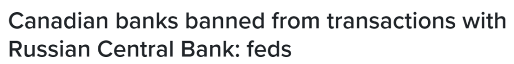 第贰,加拿大銀行被禁止與俄羅斯中央銀行進行任何交易。這是上周俄羅斯入侵烏克蘭後加拿大對俄羅斯實施的最新壹輪制裁,也是為了限制俄羅斯為其入侵提供資金的能力。