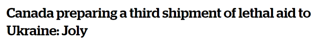第壹,加拿大正准備向烏克蘭運送第叁批致命武器。外交部長梅蘭妮·喬利今天表示,國防部長安妮塔·阿南德正在努力提供更多致命援助。