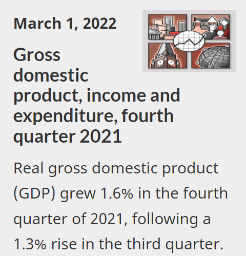 第壹個喜訊是,加拿大統計局今天發布去年12月和第肆季度的GDP數據。盡管受到奧密克戎變種所引發的傳播高潮以及壹些示威活動的影響,加拿大去年第肆季度經濟按年率計算增長 6.7%,超過了分析師預期的 6.5%。