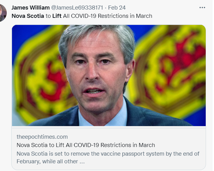 新斯科舍省在本月3月也會取消所有的新冠限制。