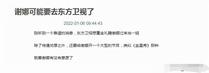 湖南衛視的跨年演唱會上,曾經的主持人淪落為嘉賓,待遇和往常是千差萬別。事業處於停擺階段,她只能尋找其他出路。在早些時候,就有不少聲音說。東方衛視花重金邀請謝娜,並為她開了壹檔新節目,類似脫口秀《金星秀》。