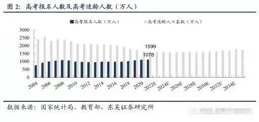 東吳證券測算分析後,發現未來10-15年,高考適齡人數將會保持穩定增長。