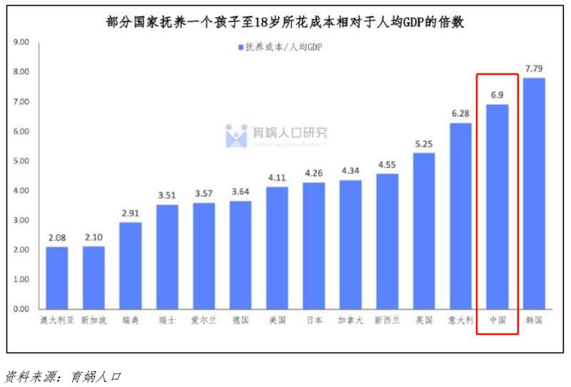 據育媧人口研究發現,中國將壹個孩子養至成年,所花費的成本相當於人均GDP的6.9倍。