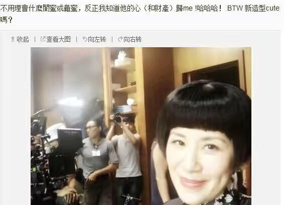 而吳君如則直接轉發了田小姐的長文,說:“不用理會什麼閨蜜或龜蜜,反正他的心和財產歸me”。