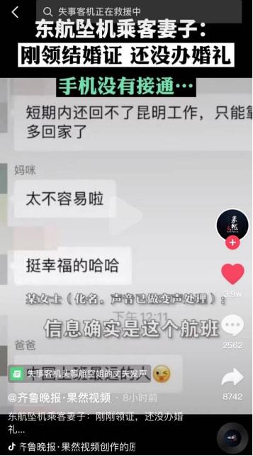 飛機上,還有6位壹同出行的乘客,目前,全部失聯。