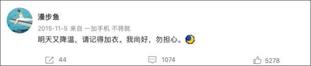 “明天降溫,請記得加衣。我尚好,勿擔心。”
