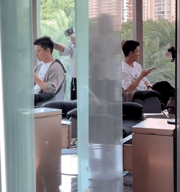 而此時,前夫賈乃亮也在叁亞,理頭發時被路人偶遇,而且行蹤拾分低調,並不想被別人看到。