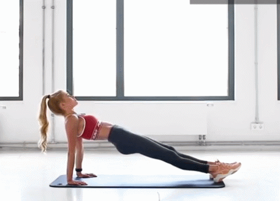 核心收緊,臀部發力向上抬起至身體從頭到腳呈壹條直線,繃緊整個身體保持動作,保持自然呼吸。