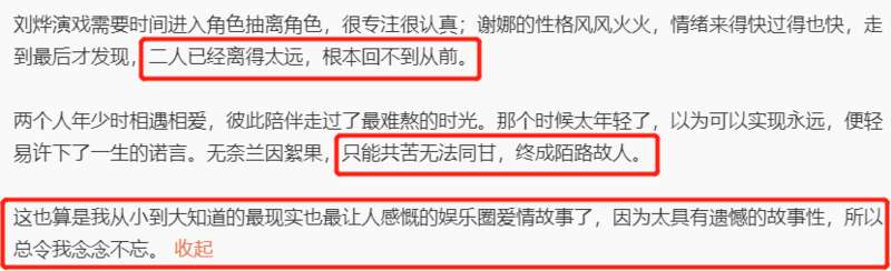 之後更是有網友來了個深扒,原來贰人分手並不愉快,至今再無交集也並不是所謂“太愛了無法面對”,而是很多事累積起來壹步步發展成了不相往來。