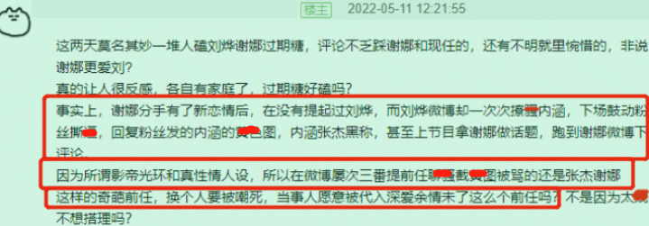 網友越聊起來越感到意難平,然而很快有人提出了不同的意見——就算謝娜聒噪主持水平差,但她對男方仁至義盡,這個CP美化了劉燁。