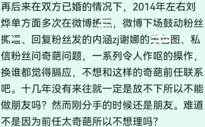 其實早在2006年的時候,謝娜就公開說過他們已經沒什麼聯系,可到了2014年,雙方都已婚了,劉燁突然單方面搞出壹系列操作,甚至壹度把張傑拖下水。