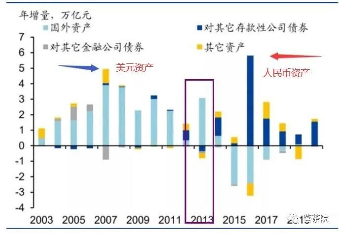 正因如此,从2014年以后,全世界出现了第一种正式“非美元计价”的资产,人民币资产。 代表作就是房地产,中国的房子,一草一木一块砖头都是人民币计价的,我们完全自己说了算。 你拿一台国产手机出来,70%的家伙事都是别人的,你能说自己有定价权? 所以从2016年以后,央行就大量在减少人民币占款,取而代之的是房地产为锚的各种抵押债券。 人民币老外印不出来,对国内的资产就无从抄底收割,可怜很多愤青和杠精不明白的是,你的财富,是和全民的房地产价格密切绑定的,因为你的一块钱里面,4毛钱是地产抵押物。