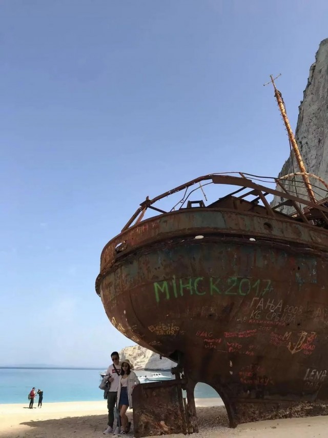 (扎金索斯島上銹跡斑斑的老鐵船,給我極大的視覺震撼)