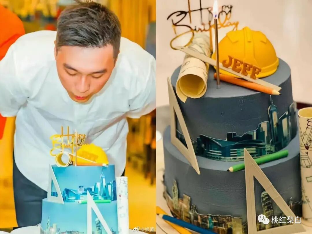 劉兆恩是建築系高材生,生日蛋糕特意做成了水泥灰色,還加上了建築元素。