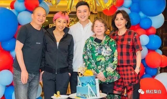 大合照中,劉嘉玲的媽媽也有現身,站C位的壽星,是壹位高大英俊的小鮮肉。