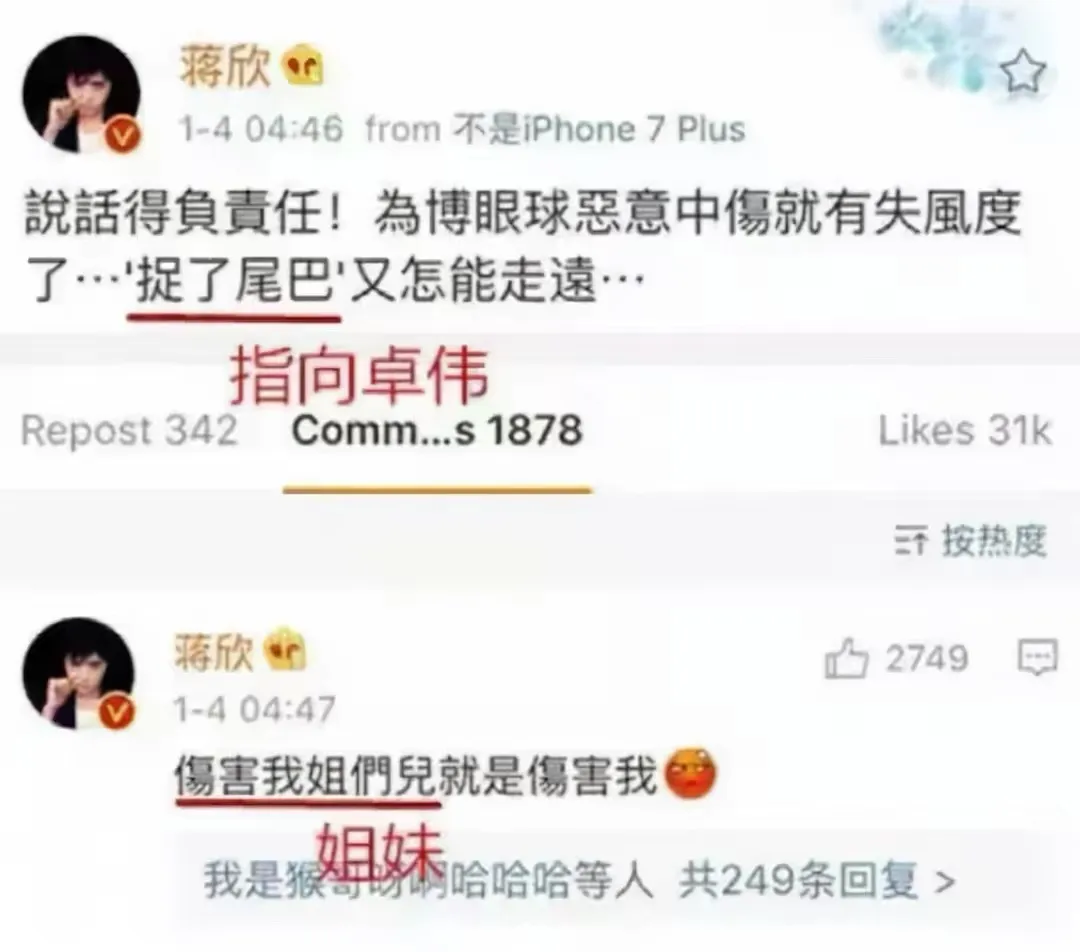 就在輿論鬧得不可開交的時候,劉濤當時的好姐妹蔣欣自作聰明的發文給劉濤辟謠。