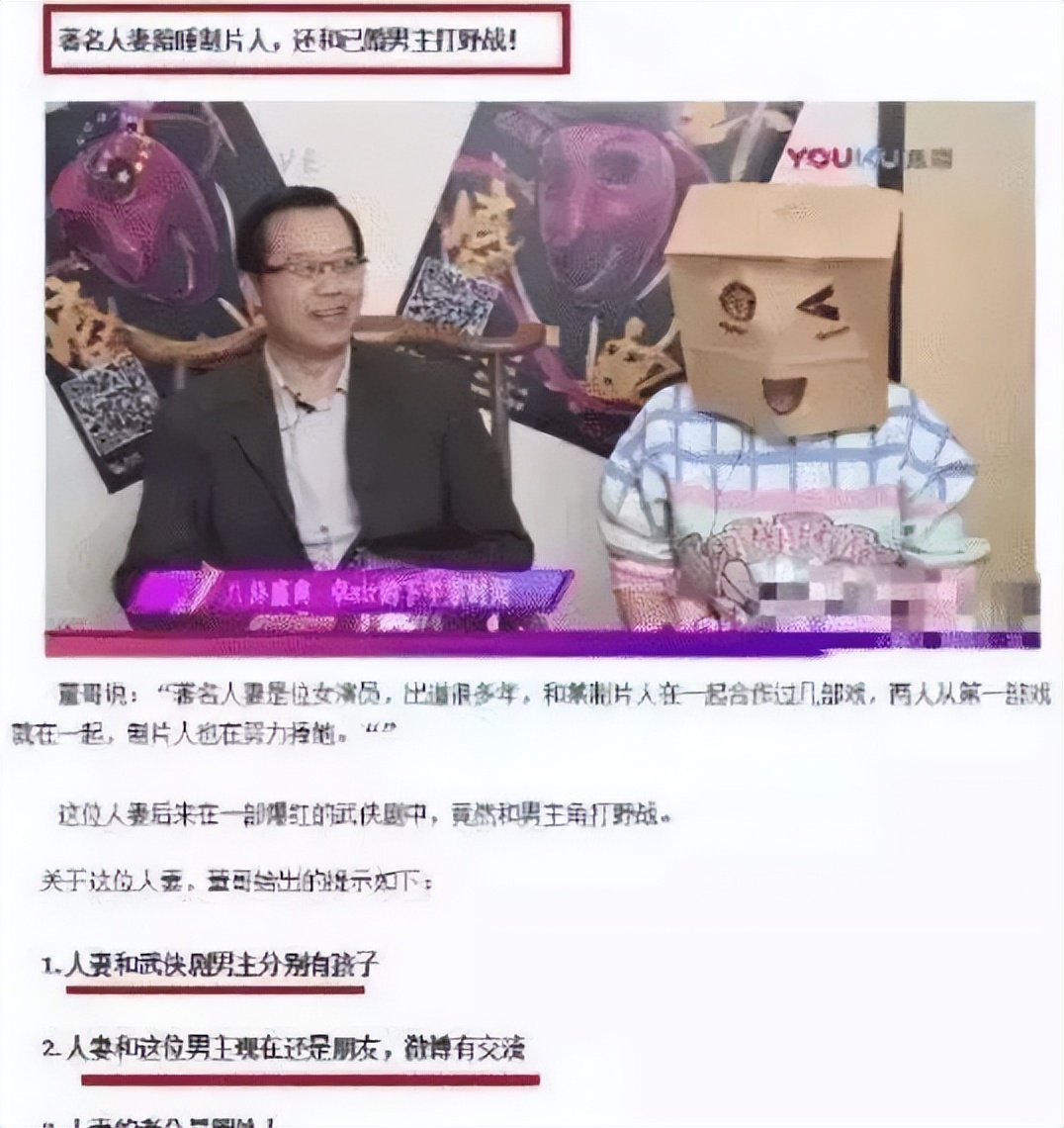 根據他透露的信息,不少人懷疑出軌說的是劉濤和制片人張紀中,演員胡軍的事。