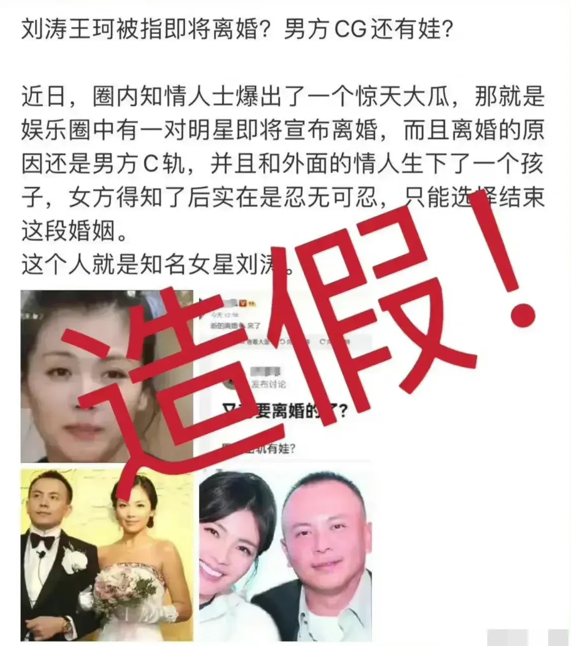在輿論的夾擊下,賢妻劉濤只好出現,再次為夫辟謠,她稱都是造假的,會報案並提起訴訟。