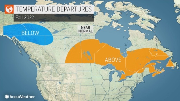 AccuWeather的數據顯示,雖然托菲諾(Tofino)等地的許多風暴觀察者預期在西海岸會有大動作,但草原省和東部省份的天氣預測顯示,今秋將會溫和得多。