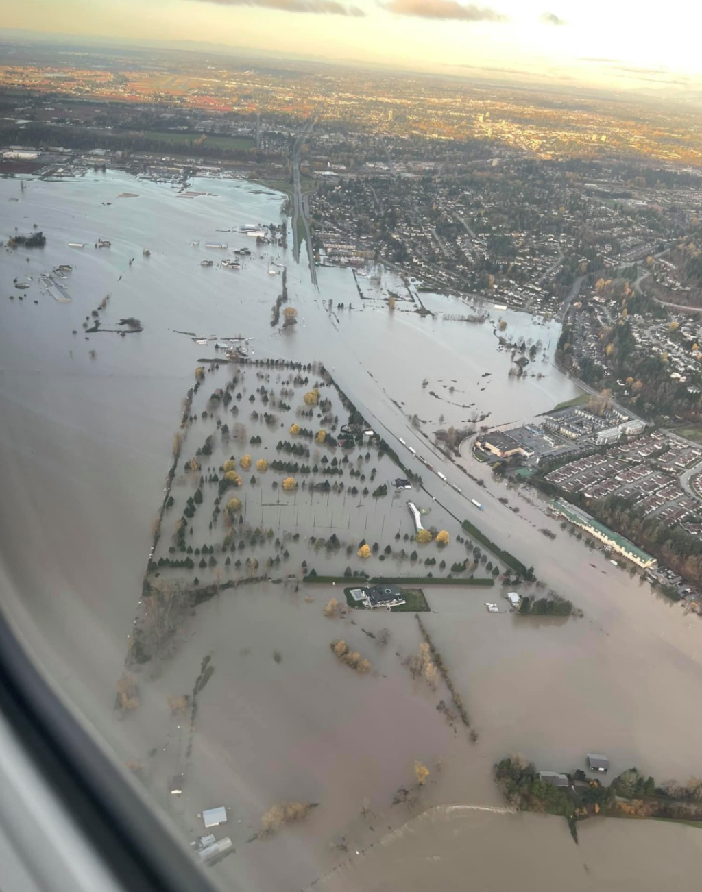 圖源:2021年11月BC省阿伯茨福德洪水航拍畫面/Sophia Middleton