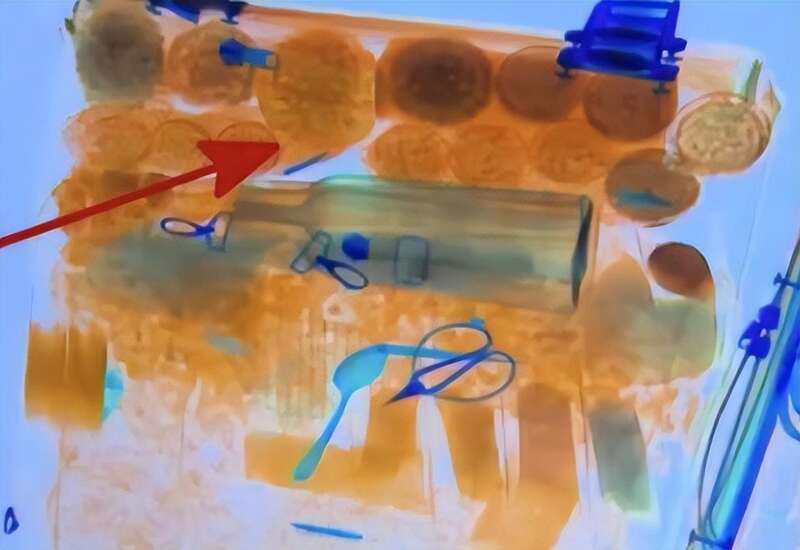 在掃描箱子的時候,工作人員發現了違禁物品,但是具體是什麼東西需要開箱檢查。