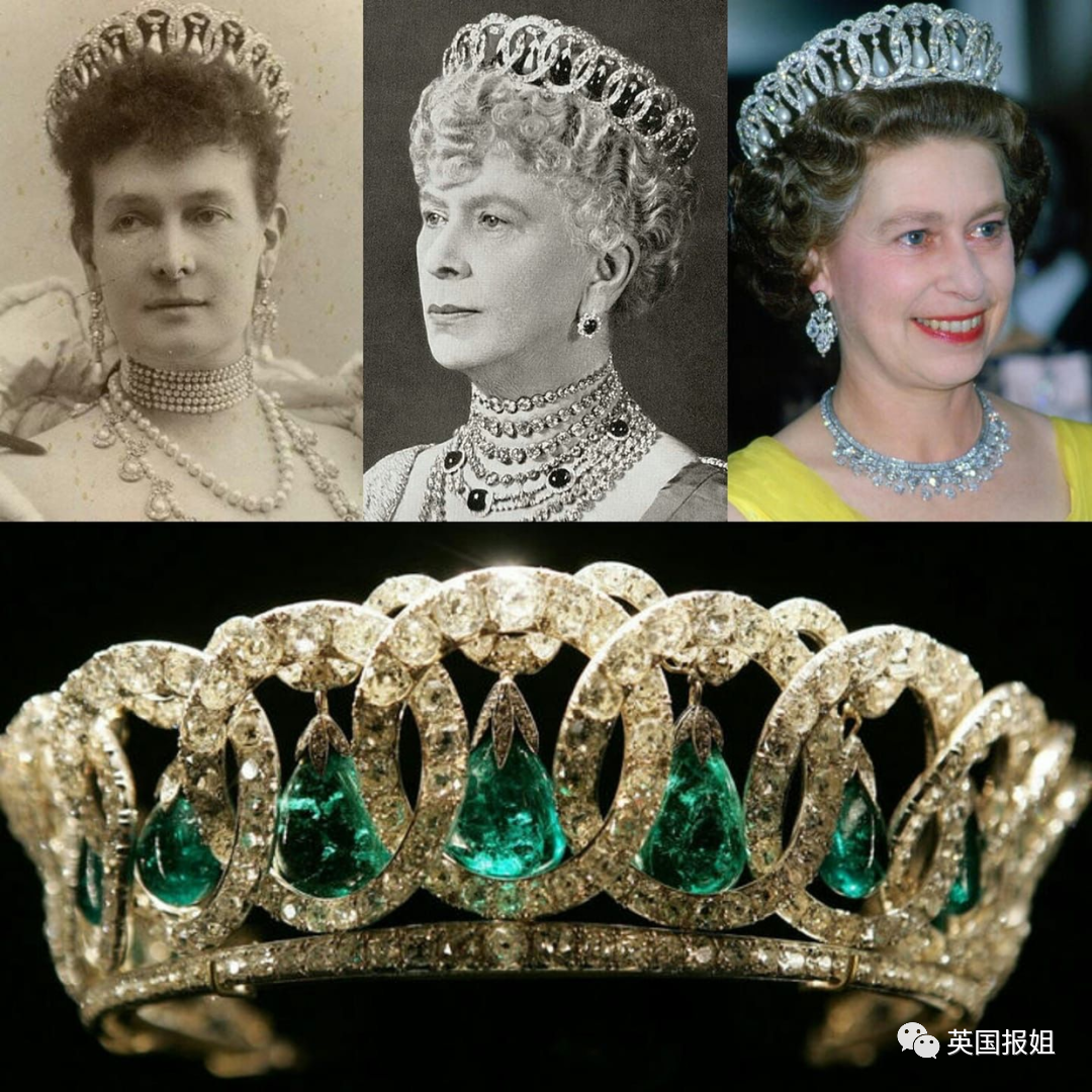 它的出現頻率很高,女王有時會將上面的祖母綠寶石替換成淚滴形珍珠,搭配不同的項鏈。