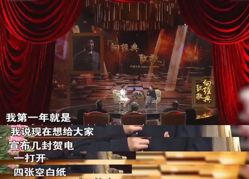 當時的情景是面對全國人民朗讀賀詞,接過導演遞來的信封,壹打開,肆張白紙。