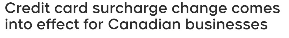 上周宣布的新規定,加拿大企業現在可以將交換費用直接轉嫁給客戶,對於使用信用卡支付的客戶,費用從大約1%到高達3%不等。