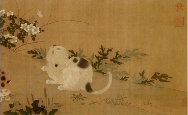 隨著唐宋寵貓之風的興起,貓開始出現在畫師筆下。因為貓多愛捕鼠、捉雀、玩弄螞蟻等等,頑皮可愛又好奇機敏貓成為畫師們很好的作畫題材。此時的貓蝶作品也多為畫師觀察貓習性的描繪。