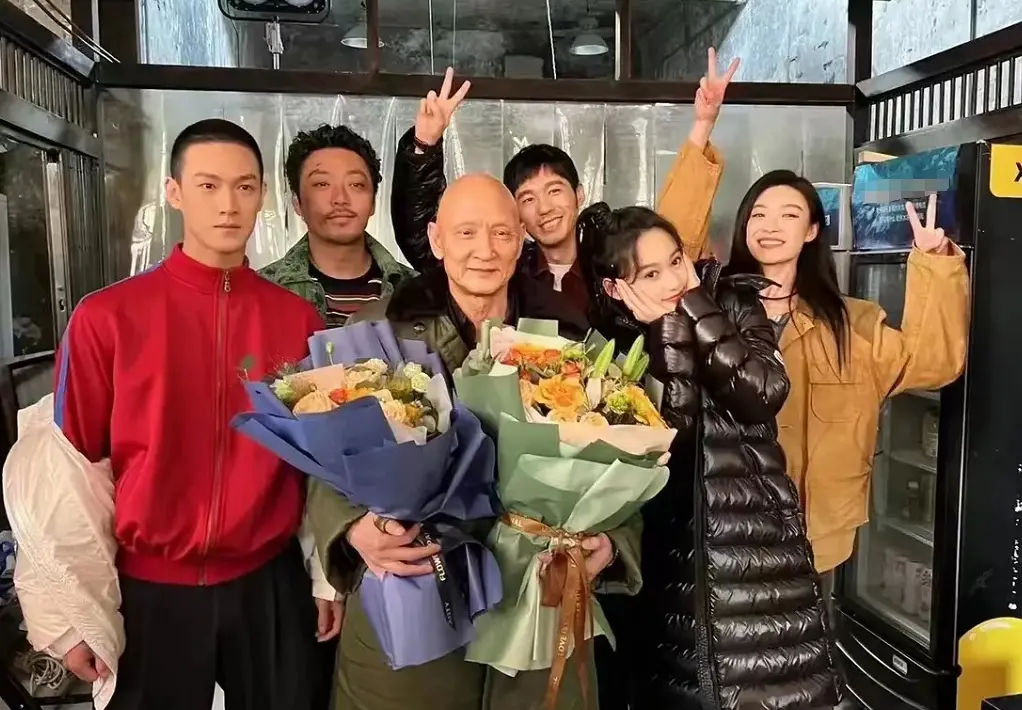 除了杀青宴,经纪人还分享了好几张在片场的杀青照。其中,穿红衣服的小伙子很是亮眼。