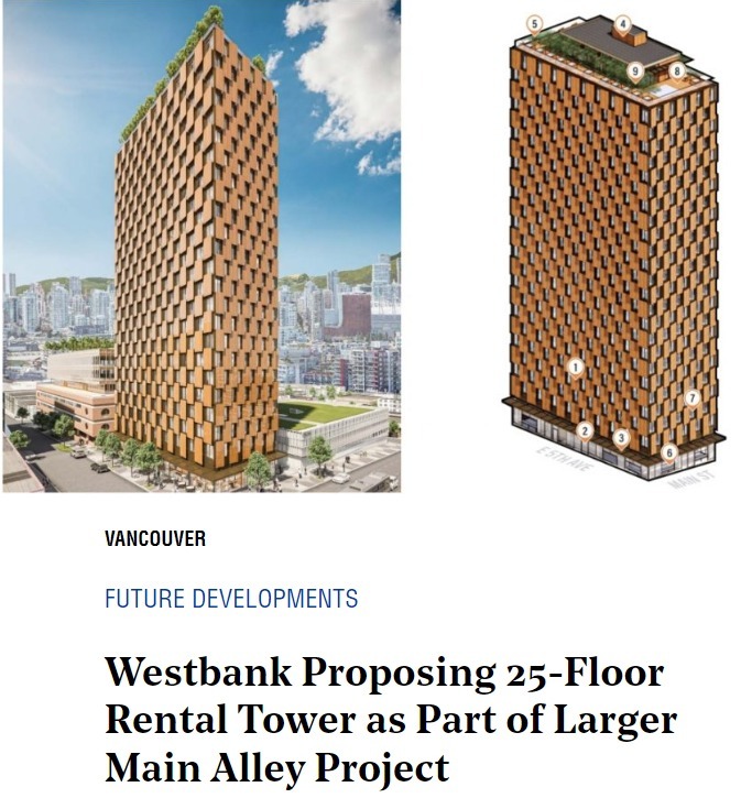 (加西網綜合)作為溫哥華主街(Main Street)重新開發建設的重要組成部分,開發商 Westbank 已經向溫哥華市政府提交了新的分區申請,將在這裡建設壹座 25 層高的大型木結構建築用於租賃房屋。