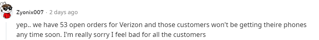 我們至少有53個訂單還沒處理,顧客想拿手機,估計要等上壹段時間了