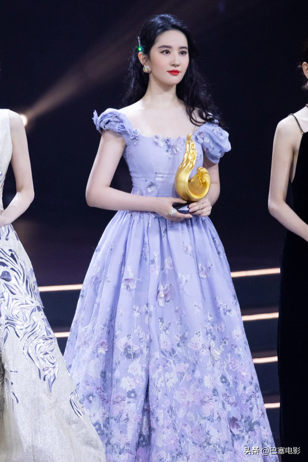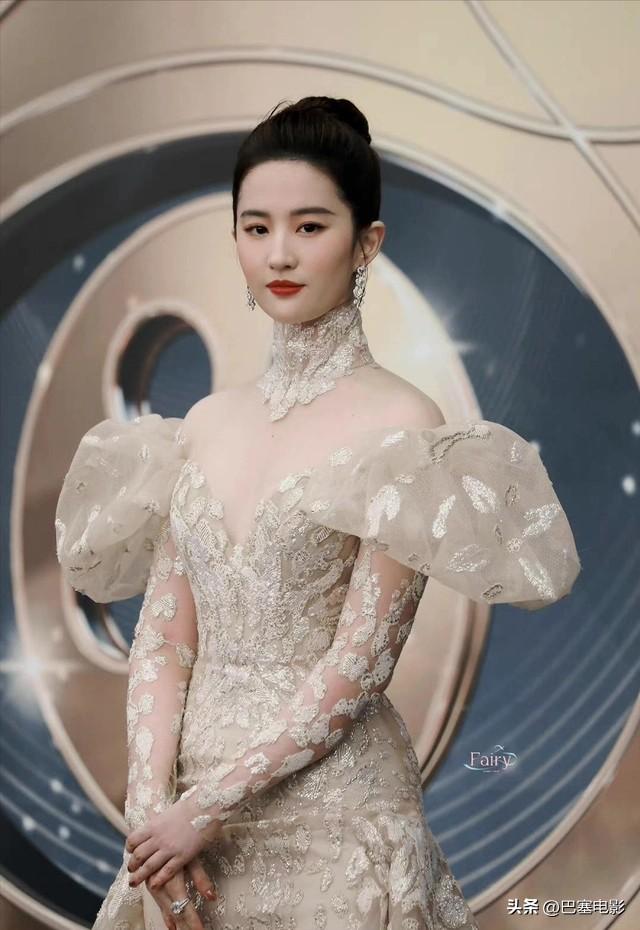 在電影之夜紅毯上,劉亦菲穿了壹件香檳色長裙,戴了壹條華麗的長項鏈,遠看感覺她真挺優雅的,整個人美得閃閃發光,好像迪士尼在逃公主。