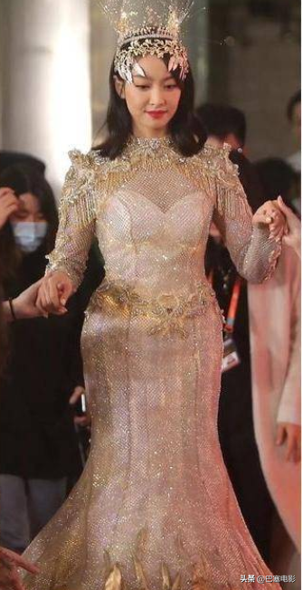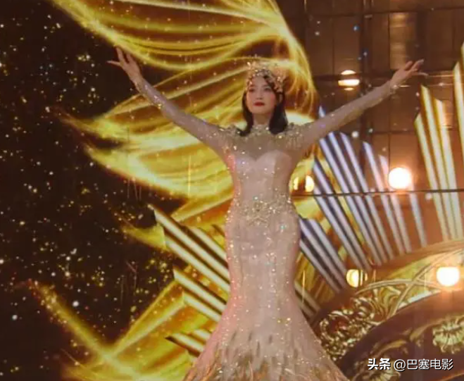 2020年金鷹節典禮上,宋茜作為金鷹女神亮相登場。當天,她穿了壹件閃閃發亮的金色戰袍,戴著王冠。本來挺有氣勢的壹件衣服,但宋茜穿上後,纖細感全無,看上去又矮又胖,特別像大媽。這哪裡是金鷹女神,簡直就是胖頭魚。