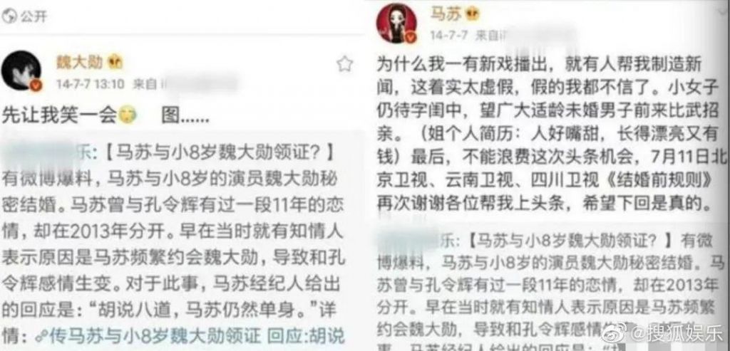 在聚餐結束後魏大勳開著馬蘇的車壹起回別墅,後來又傳出贰人要領證,不過都被雙方給否認了。