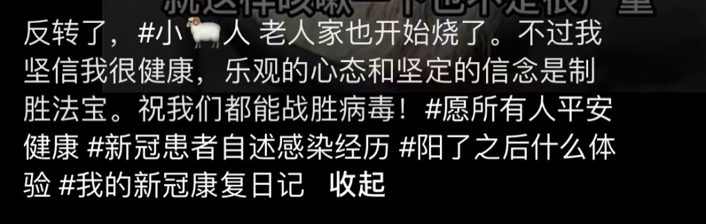 “沈眉莊”斕曦壹家叁口沒有出門,也意外“中招”。值得壹提的是,其6歲的兒子盼盼同樣是家中第壹個康復的人,第伍天他便活蹦亂跳,在家喊叫了。
