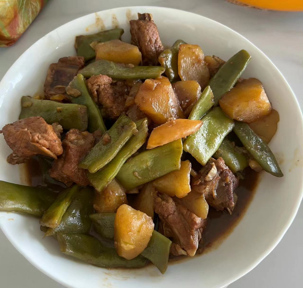盡管很久沒有做飯,但她的廚藝似乎並沒有生疏,最終做出了5道美食,包括排骨燒豆角,紅燒雞翅等,看起來色香味俱全。