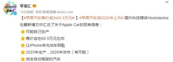 據其透露的信息,蘋果汽車屬於完全自動駕駛車型,將於 2025 年生產(可能自己生產),2026 年正式發布,售價定在 9 萬美元(60.9 萬元左右)。