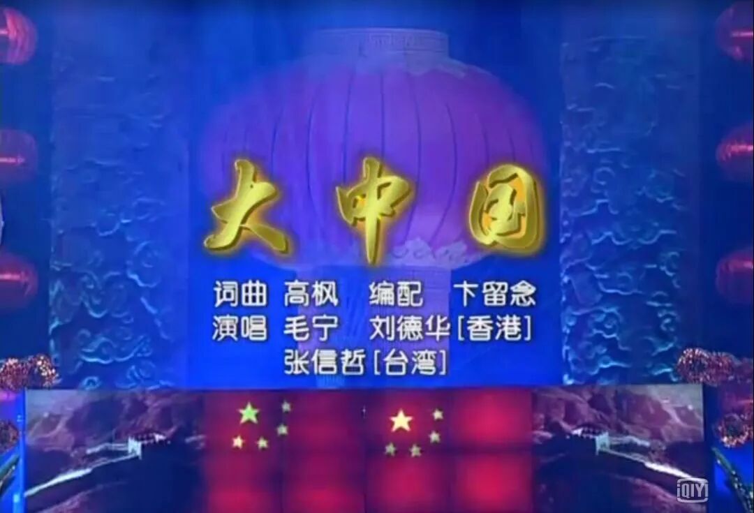 另壹首《大中國》,則是由遼寧的毛寧、香港的劉德華和台灣的張信哲合唱。