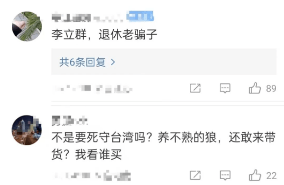 除此之外,李立群還曾說過,他不會來大陸拍戲了,工作都在台灣那邊弄。以後要是去大陸,都是去看親戚朋友,給祖先上墳。明明以前說不來大陸工作,如今卻又說要來大陸帶貨賣雞蛋,他這前後矛盾的言論,自己“打臉”自己,難怪會引得網友吐槽。