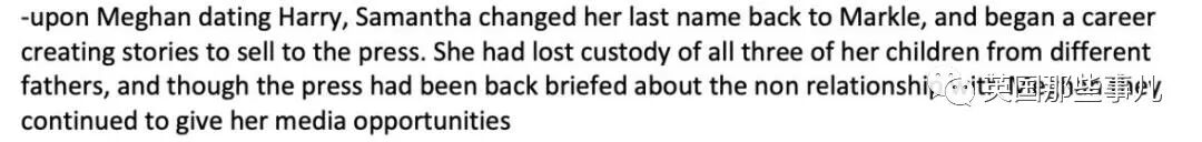 這句話也被薩曼莎抓住,放進了訴訟書裡,她認為梅根又不知道自己為什麼改姓,這是惡意誹謗......