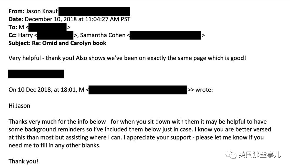 結果後來又被扒出,梅根早在2018年就曾指示通訊秘書 Jason Knauf給過作者壹些參考用的信息,“完全沒合作”壹說不攻自破,有郵件為證: