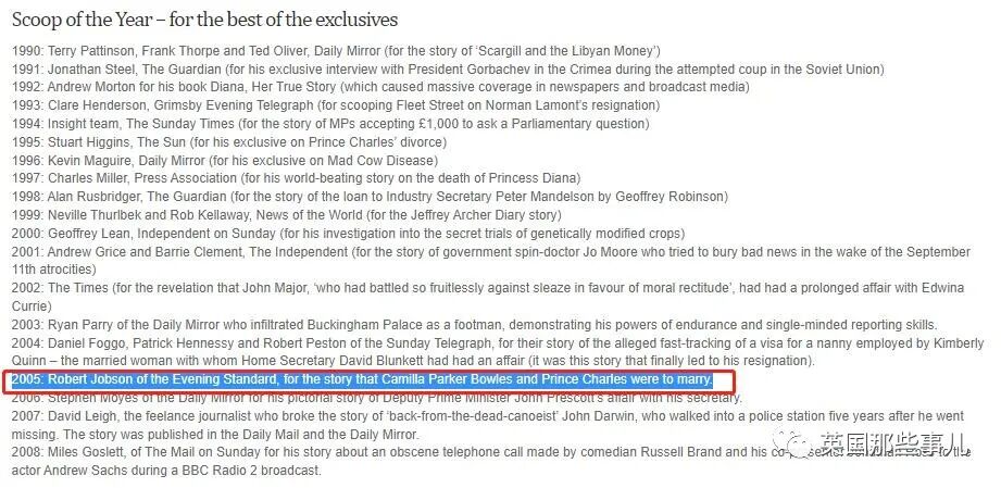 2005年,他又做出了查爾斯跟卡米拉結婚的獨家報道,他又不知從哪得知了婚禮的具體時間,搶在所有媒體之前發布了消息,還因此拿到了倫敦新聞俱樂部的年度獨家新聞獎......