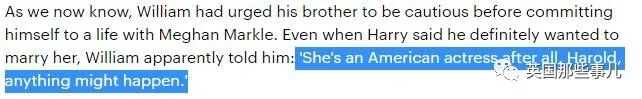 威廉曾經很真情實感地勸哈裡要“謹慎”,因為“畢竟她是個美國女演員,哈裡,任何事都可能發生”。