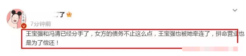 因此有不少網友怒罵王寶強狠心,眼看女友正陷在困難時期,不僅不幫助反而急忙撇清關系。在曝出馮清欠債新聞當天,王寶強曬出自己在家鄉河北表演戲劇的照片,只字不提女友的欠債壹事。