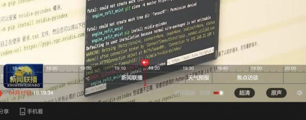 3.使用者在翻墙后仍遇到一些问题,因此误以为是GitHub源遭到了防火墙屏蔽,最终换用了“清华大学源”,更增加了视频笑点。