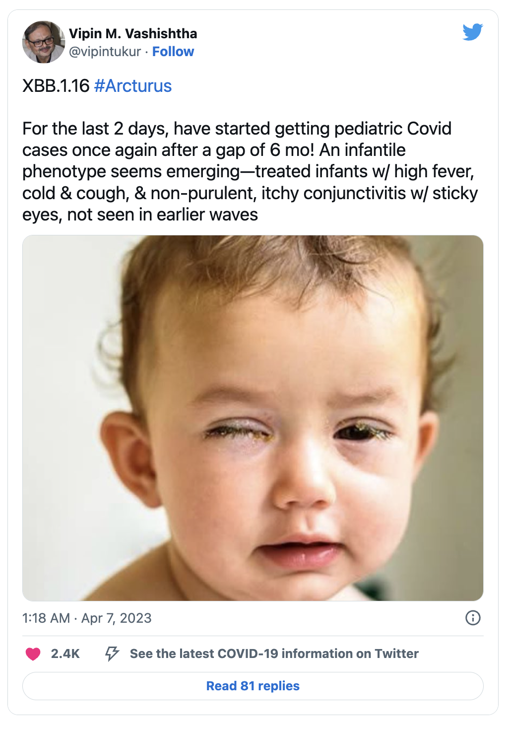 特別是在很多小孩子中被發現關於新變種的最突出的病症:結膜炎。