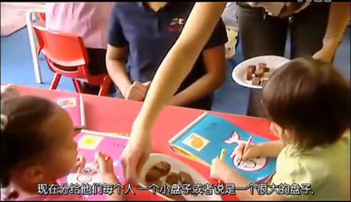 有些孩子會把小餅幹推開,然後繼續幹著自己想做的事情。而有些小孩,會放下手中的畫筆,開始吃餅幹。
