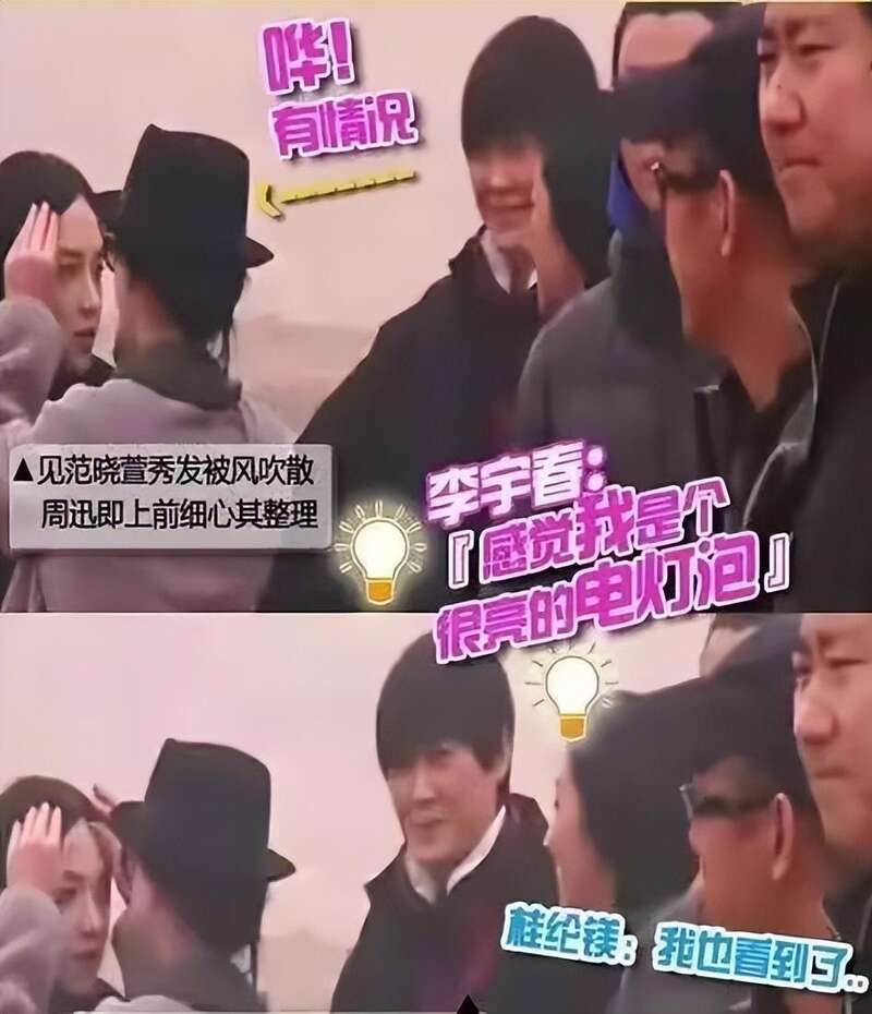 《龙门飞甲》的拍摄花絮中,周迅见范晓萱头发被吹散熟练的上前去给她整理,引得旁边的李宇春都说感觉自己像是个“电灯泡”。